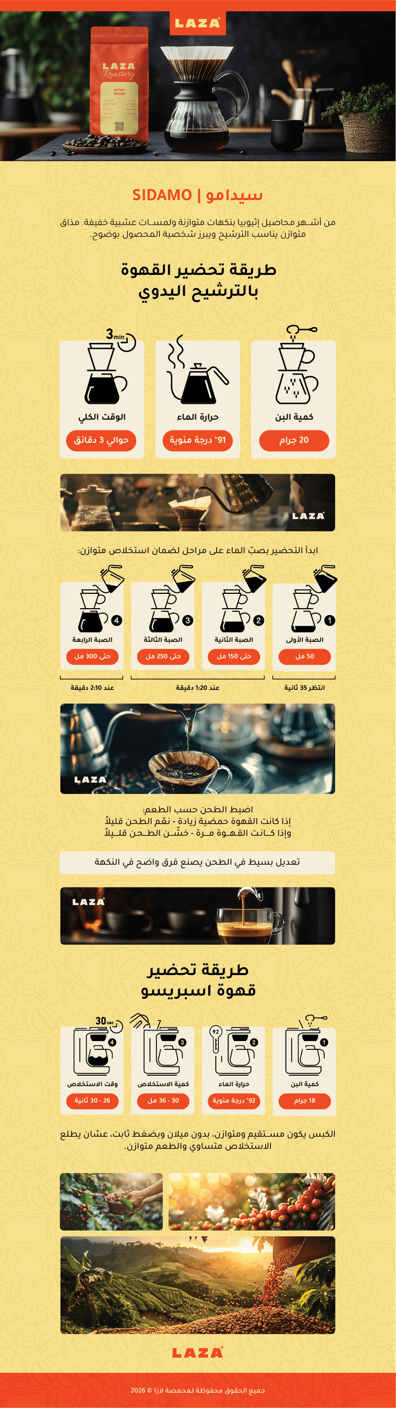 من أشهر محاصيل إثيوبيا بنكهات متوازنة ولمسات عشبية خفيفة. مذاق متوازن يناسب الترشيح ويبرز شخصية المحصول بوضوح.
